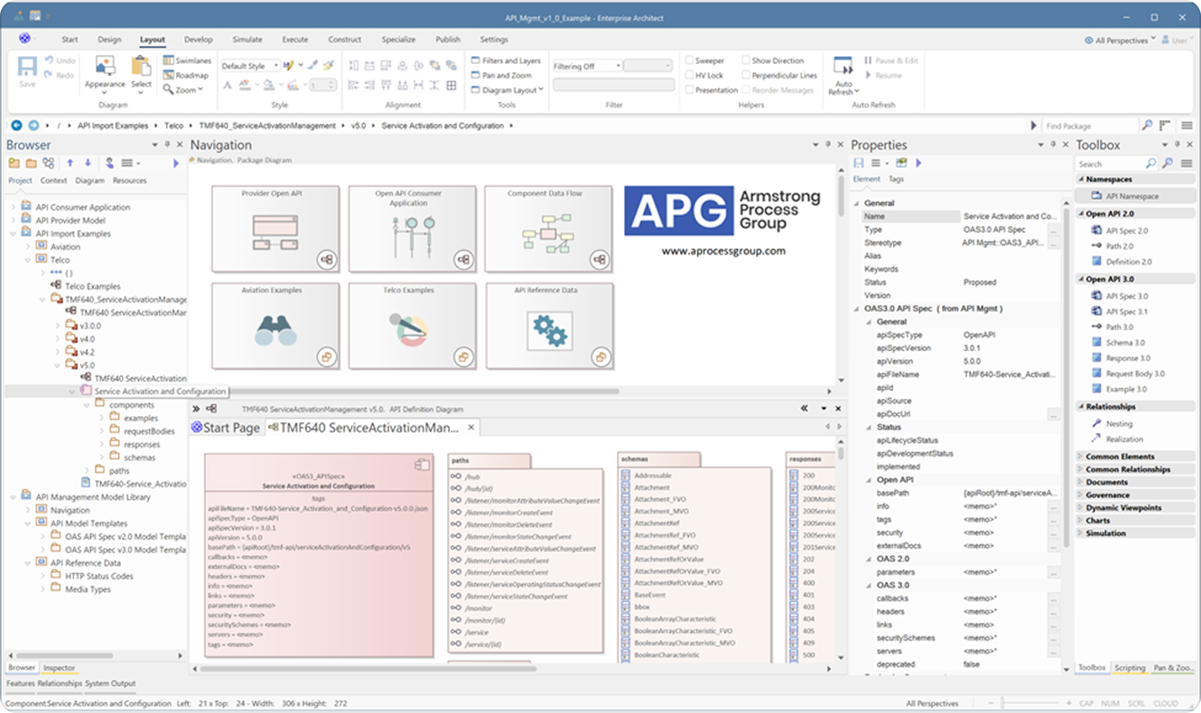 In today’s world of event-driven architecture and cloud-native microservices, effective management of APIs is critical. The API Management MDG Technology for Sparx Enterprise Architect from APG provides your architecture practice the foundation for integrating API design and implementation into your API governance and development processes.